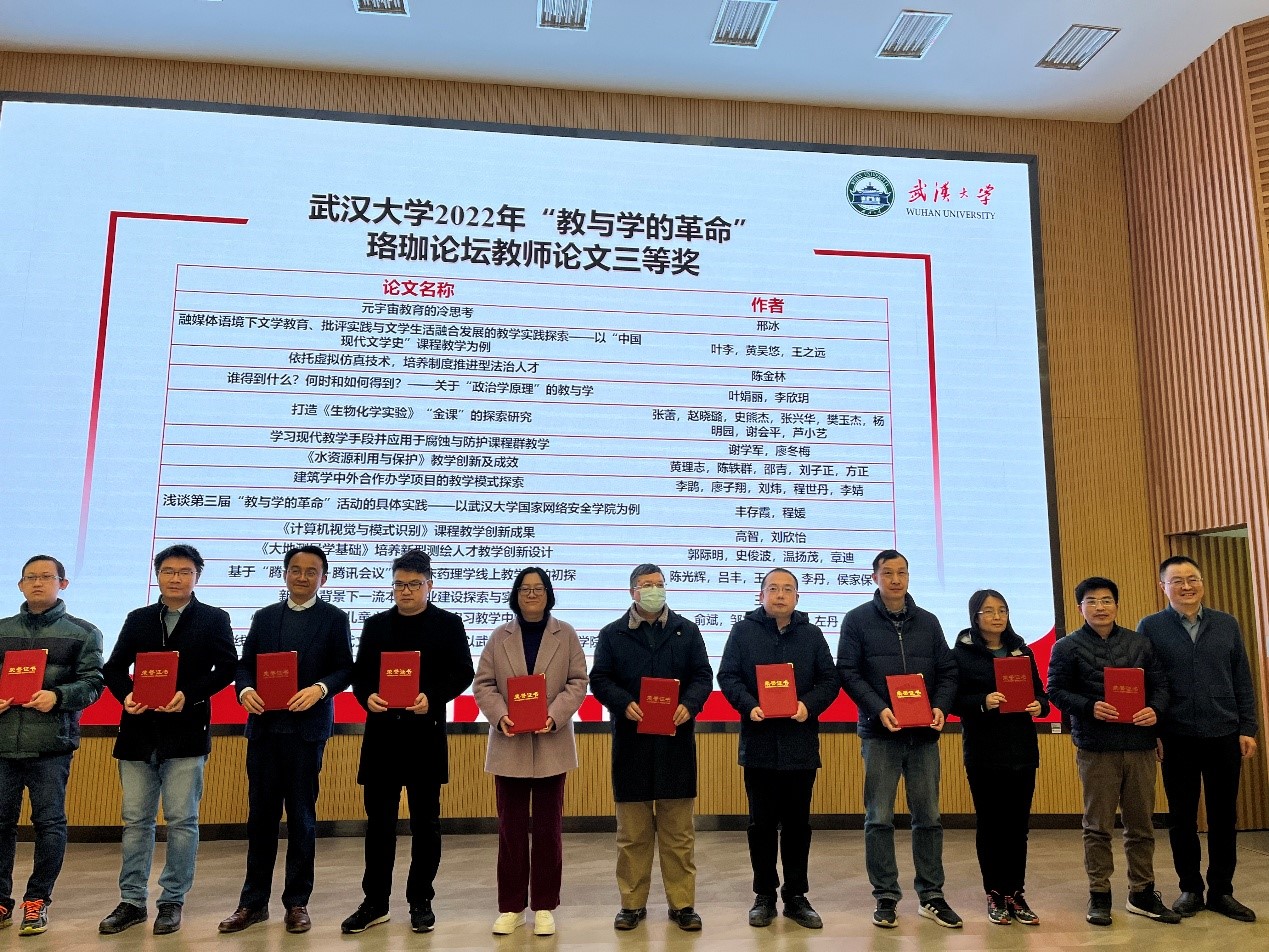 2月15日上午,学校颁发了武汉大学第三届“教与学的革命”珞珈论坛系列奖项,beat365体育官方网站获优秀组织奖,李杰获教师论文二等奖,郭际明、史俊波、温扬茂、章迪获教师论文三等奖,秦咏梅、毛玉霞获本科教学管理工作先进个人。