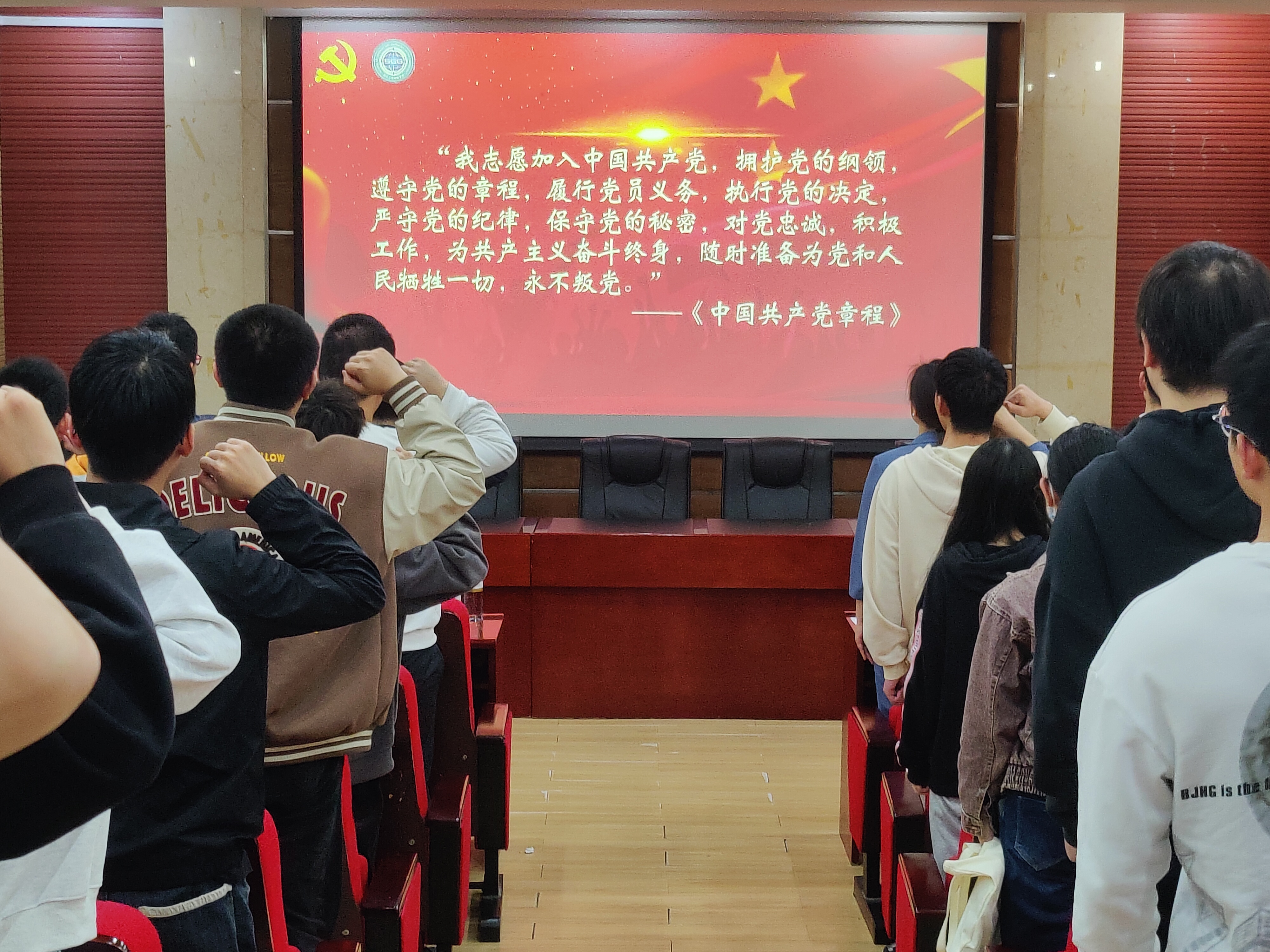 最后,最近一批发展的学生党员进行入党宣誓,其他与会人员一并重温入党誓词。