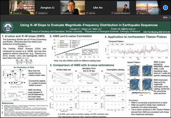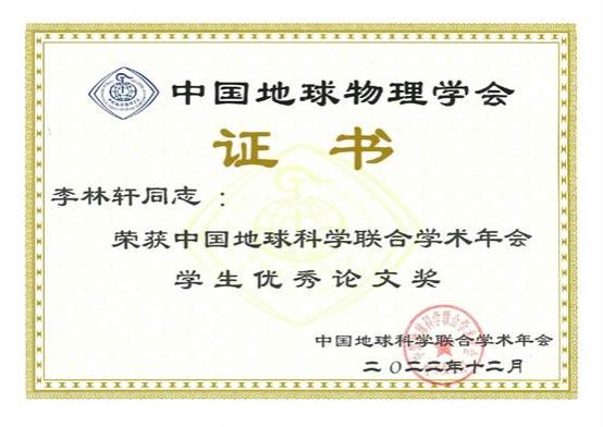 大学四年间,在科研导师罗纲教授的悉心指导下,同时得到美国密苏里大学刘勉教授、北京大学宋晓东教授、学院李江涛研究员等老师的耐心指导,李林轩就地表水圈变化造成的地壳形变、地震活动和地震波速变化开展了系统性地研究,并积极探索地震统计等领域的前沿。目前,以第一作者撰写三篇学术论文,其中第一篇发表于国际地学顶级期刊《地球和行星科学通讯》(Earth and Planetary Science Letters,简称EPSL,SCI一区top,Nature Index),第二篇发表在《地震研究快报》(Seismological Research Letters,简称SRL,SCI二区),第三篇论文已完成并投稿。相关研究成果以摘要的形式发表于美国地球物理学会秋季会议(AGU Fall Meeting)和中国地球科学联合学术年会。
