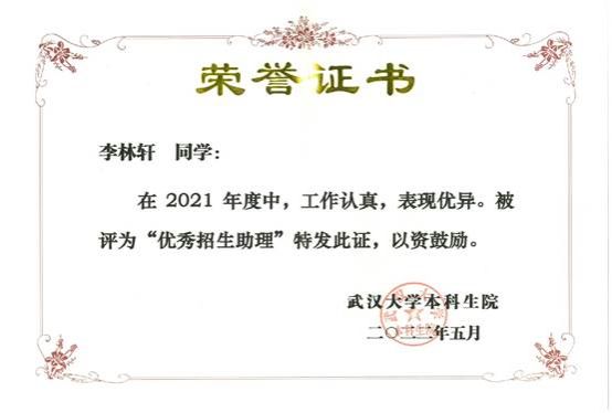 在四年前高考填报志愿的时候,李林轩和时任江西招生组组长彭华老师促膝长谈了一个小时,这次谈话让他决定报考武汉大学地球物理学专业。进入了大学后,他更加发现了选择一个合适的专业对于个人成长和发展的重要性。因此,他加入了武大招办学生大使团,通过直播、微信公众号和深入招生现场等方式,帮助更多的高中生找到自己未来的方向,并被学校授予优秀招生助理称号。