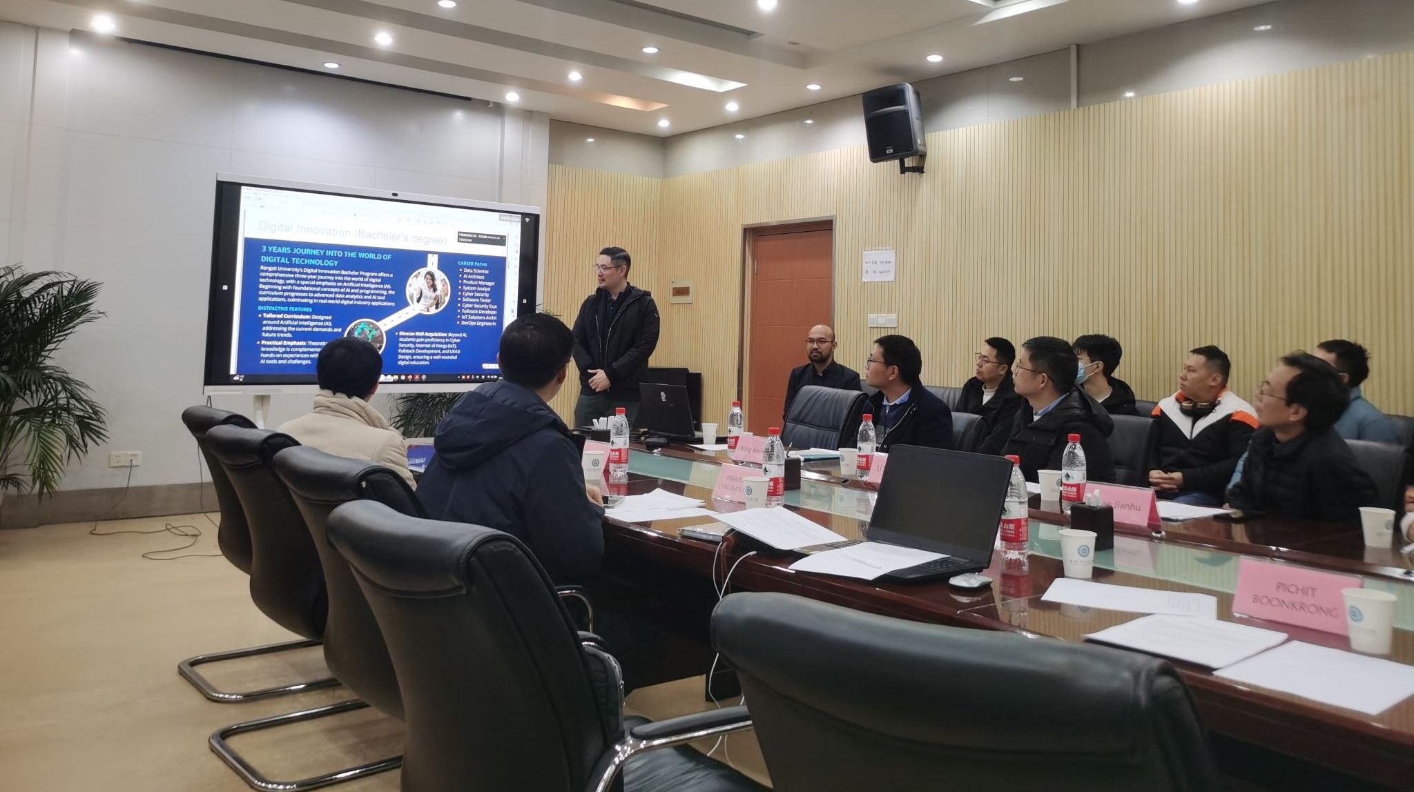 2023年12月14日上午,泰国兰实大学数字创新技术学院副院长Dr.Parkpoom Chaisiriprasert、数字创新技术学院数字创新系主任Dr.Karn Yongsiriwit等一行四人到访beat365体育官方网站并进行学术交流。学院副院长李星星教授、海洋研究院院长赵建虎教授、王爱学老师及相关课题组研究生参加了交流座谈。