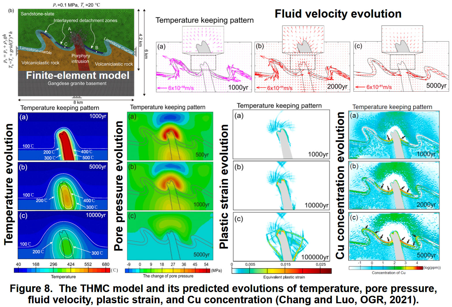 • Cheng Chang,Gang Luo*, 2021, The Coupled THMC finite-element modeling of hydrothermal systems: Insights into the Jiama porphyry metallogenic system, Ore Geology Reviews, 138, https://doi.org/10.1016/j.oregeorev.2021.104404.