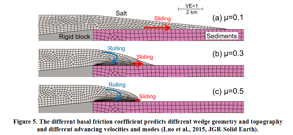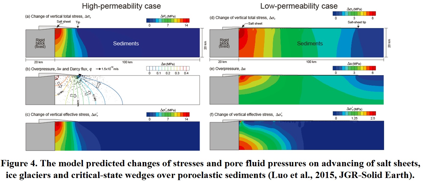• Luo G.*,Flemings P. B., Hudec, M. R., and Nikolinakou, M.A., 2015, The role of pore fluid overpressure in the substrates of advancing salt sheets, ice glaciers, and critical-state wedges, Journal of Geophysical Research-Solid Earth, v. 120, p. 87–105, doi:10.1002/2014JB011326.