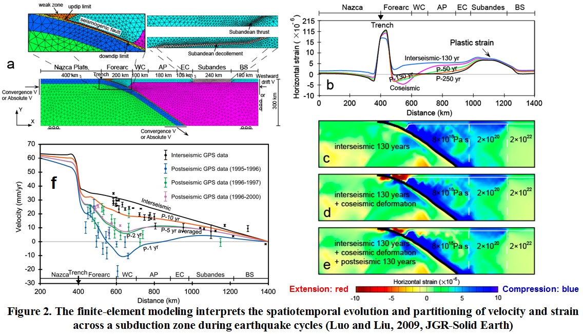 • Luo G.*and Liu, M., 2009, How does trench coupling lead to mountain building in the subandes? A viscoelastoplastic finite element model, Journal of Geophysical Research-Solid Earth, v. 114, B03409, doi:10.1029/2008JB005861.